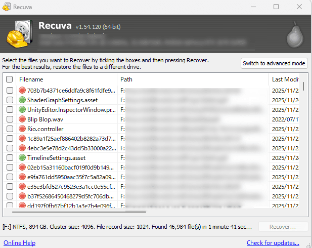 Windows向けのファイル復元ソフトRecuvaを試してみました。基本的な機能は無料で使えるようです。