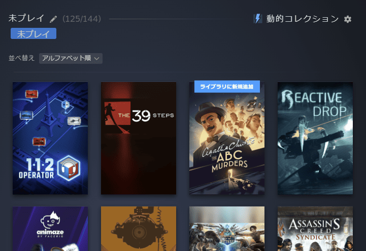 未プレイのゲームを動的コレクションでまとめることで、積みゲーを可視化できます。